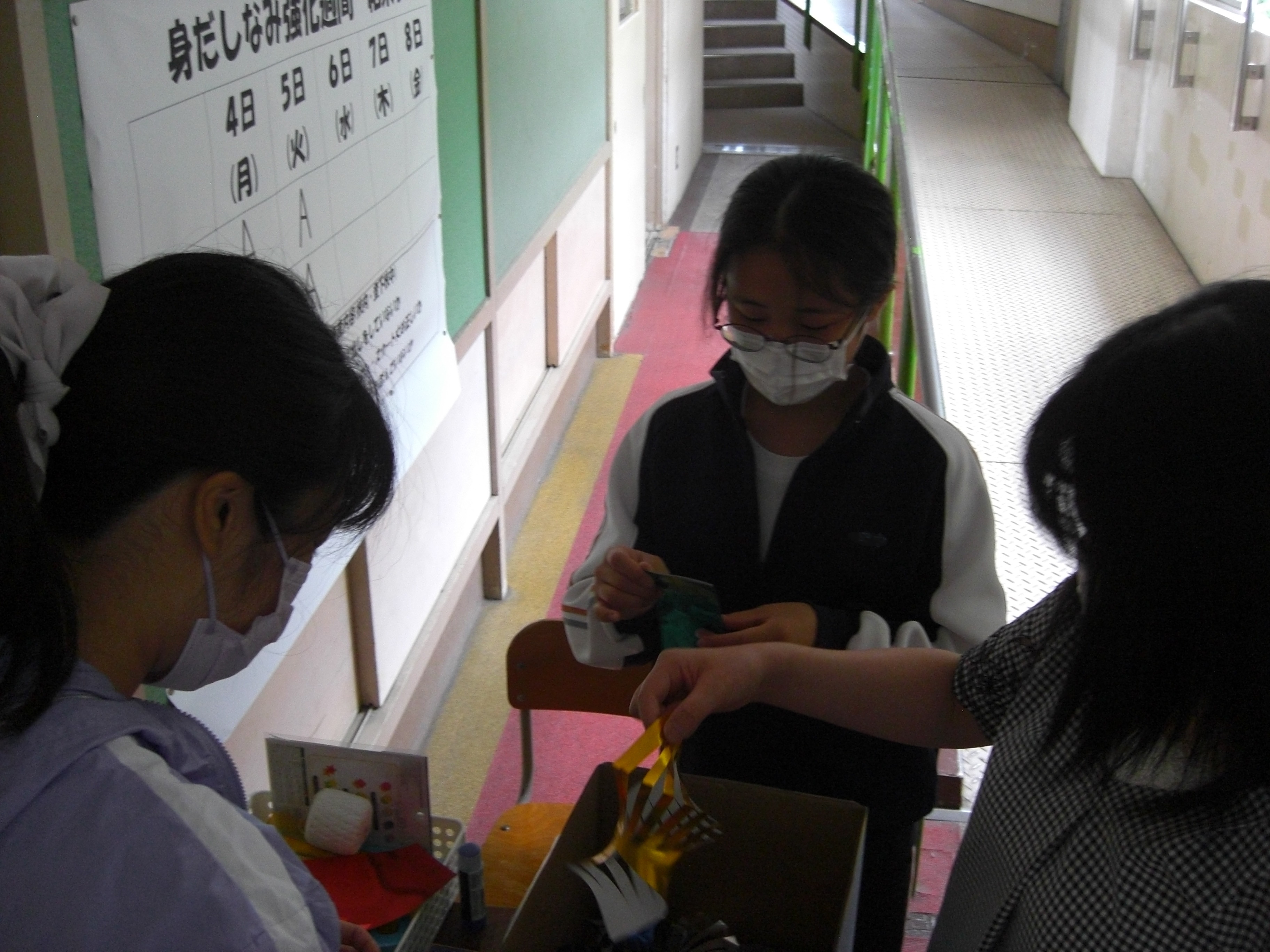 短冊には、勉強や受験、総体のこと、また、世界平和を願うものも複数ありました。みんな、いろんな事を考えながら、今この時を生きているんだなあ、と思いつつ、こういう季節の事を取り扱うことも、「豊かな心」を養う大切なことなのだと改めて思いました。まさに、生徒たちや先生たちの心と心をつなぐ、「かささぎ」のような役割を果たしているのだと思います。