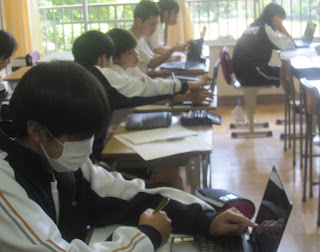 クロームブックで高校のホームページや 輝けきみの明日にアクセスして 色々調べます |